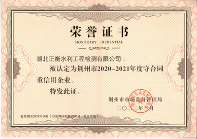 “守合同重信用”荣誉证书